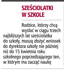 - Pieniądze będą przekazywane samorządom na trzy cele: koszty nauki dzieci sześcioletnich, doposażenie szkół, choć swój udział w tym zadaniu mają mieć także samorządy, oraz na dobrą opiekę świetlicową. Wszystko zależy od tego, ilu rodziców zdecyduje się posłać swego sześciolatka do I klasy. W zależności od liczby dzieci może okazać się konieczne utworzenie nowych klas oraz dodatkowych grup opieki świetlicowej po lekcjach. Samorząd będzie dzielił te środki stosownie do potrzeb poszczególnych szkół.