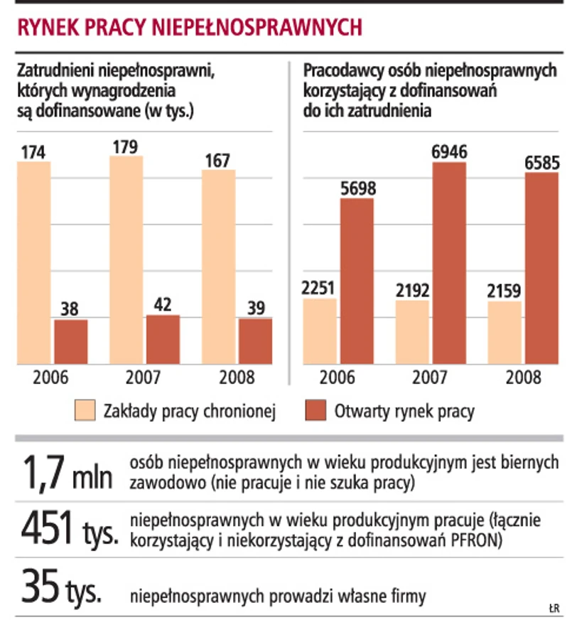 Z kolei od 2010 roku kwoty dofinansowań do wynagrodzeń niepełnosprawnych mają być takie same jak te obliczane dla ZPChr (czyli o 30 proc. wyższe).