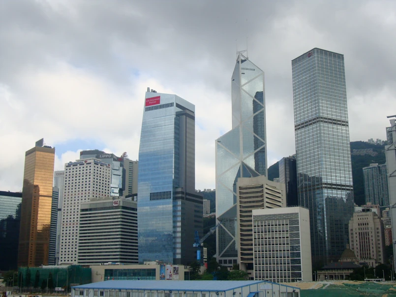 Wyspa Hongkong z charakterystcznym budynkiem Banku Chińskiego