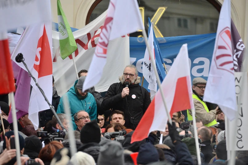 Radna Warszawy Paulina Piechna-Więckiewicz (Stowarzyszenie Inicjatywa Polska) apelowała do prezydenta Andrzeja Dudy, by nie podpisywał ustaw reformujących oświatę. "Nie podpisuj! Nie podpisuj!" - skandował zgormadzony tłum.