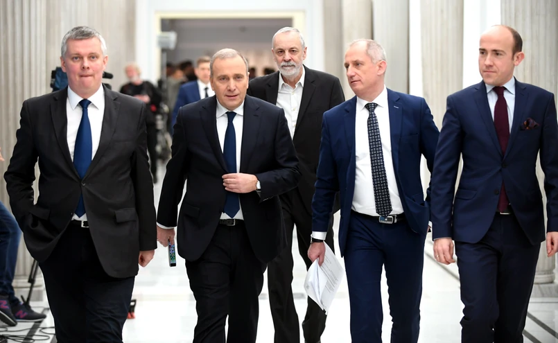 Na sali sejmowej zaczynają się gromadzić posłowie wszystkich klubów; na mównicy, wokół niej i przy fotelu marszałka zgromadzeni są posłowie PO.