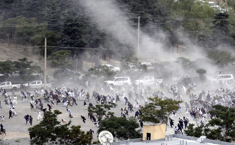 Funkcjonariusze zaczęli strzelać, początkowo w powietrze, gdy demonstranci usiłowali przedrzeć się przez kordon policji. Później protestujący ruszyli na policjantów, a niektórzy z nich rzucali kamieniami. Następnie, gdy zgromadzeni usiłowali przedostać się bliżej pałacu prezydenckiego, policja użyła armatek wodnych i gazu łzawiącego.