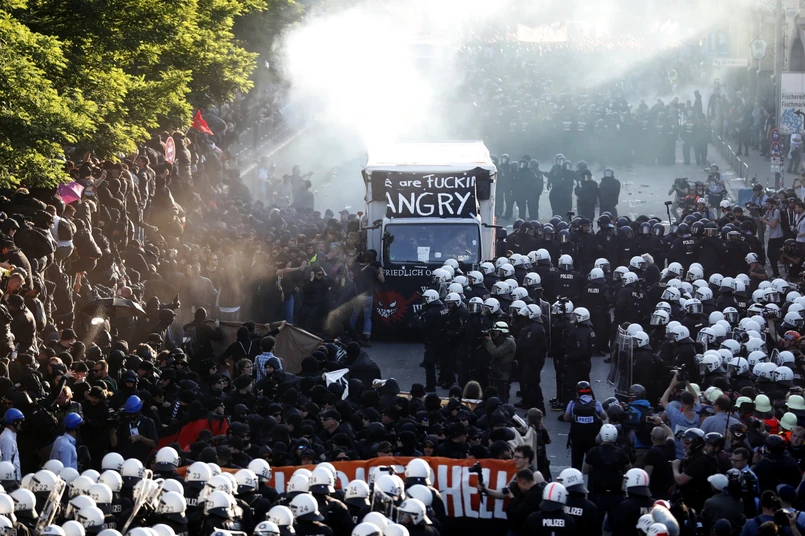Część uczestników demonstracji zorganizowanej pod hasłem "Welcome to Hell" (Witamy w piekle) zaatakowała policjantów, obrzucając ich kamieniami, butelkami i petardami. Funkcjonariusze użyli armatek wodnych i gazu łzawiącego.
