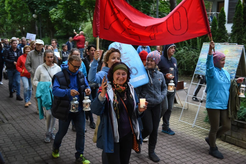 Przeciwnicy zmian w sądownictwie zorganizowali marsz przed prezydencką rezydencję na Półwyspie Helskim. Na transparentach między innymi: "Adrian zostań Andrzejem" czy "VETO". Słychać okrzyki "Wolne sądy" i "Andrzej Duda, oddaj dyplom".