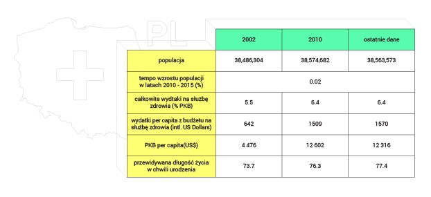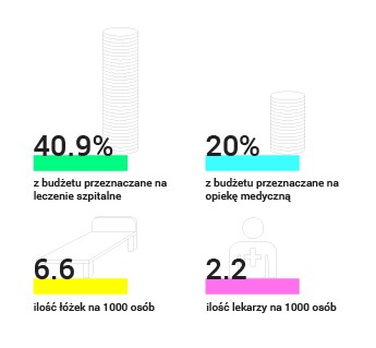 Jesteśmy w ogonie państw europejskich pod względem wydatków na służbę zdrowia (Polska - 4,7%, średnia w UE - 6,7% PKB). Choć budżet NFZ oscyluje w granicach 78 mld złotych rocznie, dodatkowo wydajemy prywatnie na leczenie prawie połowę tej kwoty (35 mld zł).