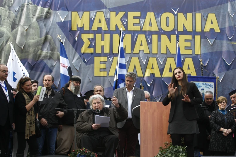 "Ręce precz od Macedonii" i "Macedonia należy do Grecji" - skandowały tysiące ludzi przybyłych na plac Syntagma. Wiele osób wymachiwało flagami ze znakiem gwiazdy, nazwanej Słońcem z Werginy – dziś godłem greckiej Macedonii.