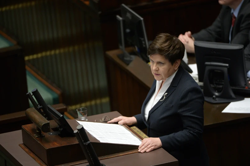 Ławy PiS przyjęły wystąpienie wicepremier oklaskami na stojąco, wznoszono okrzyki "Beata, Beata".