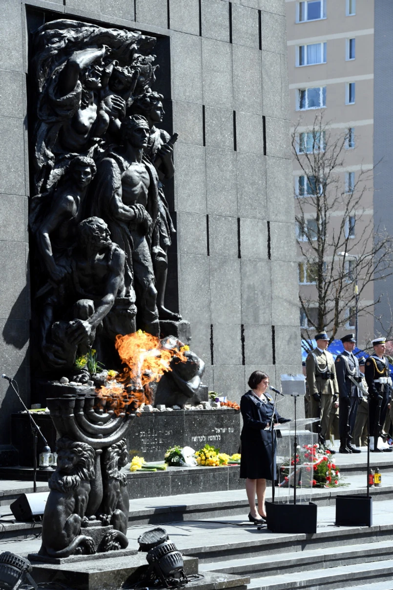 "Mój kraj dziś radośnie świętujący niepodległość pochyla głowę przed bohaterami getta warszawskiego" - oświadczyła. Azari podkreśliła, że "młodzi ludzie, który rozpoczęli powstanie walczyli o godność człowieka". Jak mówiła, odwaga tych młodych ludzi z warszawskiego getta była inspiracją dla 600 tys. żydowskich mieszkańców Palestyny, którzy w 1947 r. zostali zmuszeni do walki przeciwko wielomilionowym krajom arabskim. "Wśród nich było również wielu ocalałych z Zagłady" - wskazała.