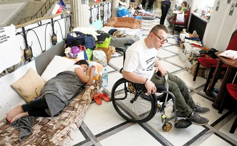 Protest opiekunów osób niepełnosprawnych i ich podopiecznych trwa od 18 kwietnia. Zgłaszali dwa postulaty - zrównania renty socjalnej z minimalną rentą z tytułu niezdolności do pracy oraz wprowadzenia dodatku "na życie", zwanego też "rehabilitacyjnym", dla osób niepełnosprawnych niezdolnych do samodzielnej egzystencji po ukończeniu 18. roku życia w kwocie 500 złotych miesięcznie; zaproponowali, by dodatek był wprowadzany krocząco: od września 2018 r. 250 zł, od stycznia 2019 roku - dodatkowo 125 zł i od stycznia 2020 r. również 125 zł. W czwartek protestujący zaproponowali by wypłata 500-złotowego dodatku "na życie" nastąpiła od przyszłego roku.