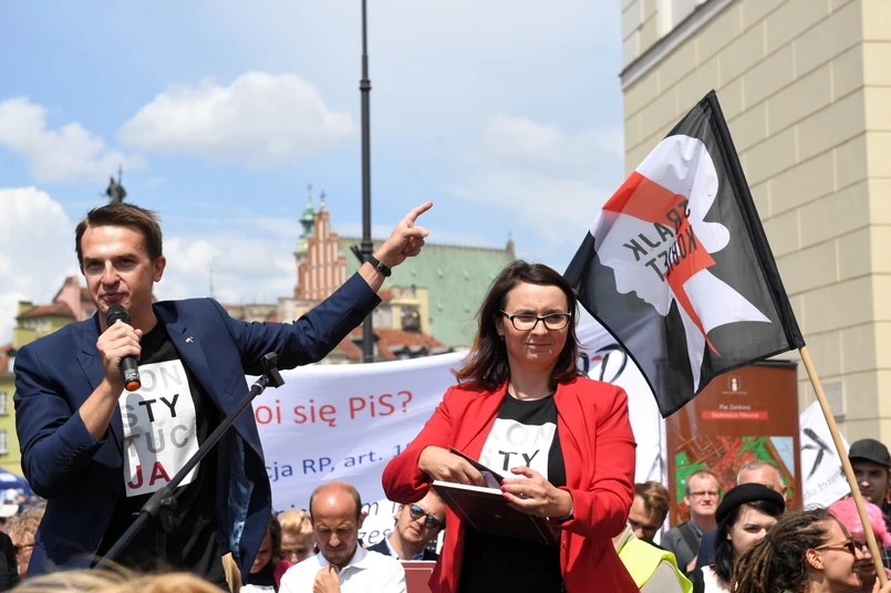 "Protestujemy przeciwko upolitycznieniu Krajowej Rady Sądownictwa i Trybunału Konstytucyjnego, ale przede wszystkim protestujemy przeciwko czystce, którą (prezydent) Andrzej Duda oraz politycy PiS przeprowadzają w Sądzie Najwyższym" - mówiła w trakcie wiecu Kamila Gasiuk-Pihowicz.
