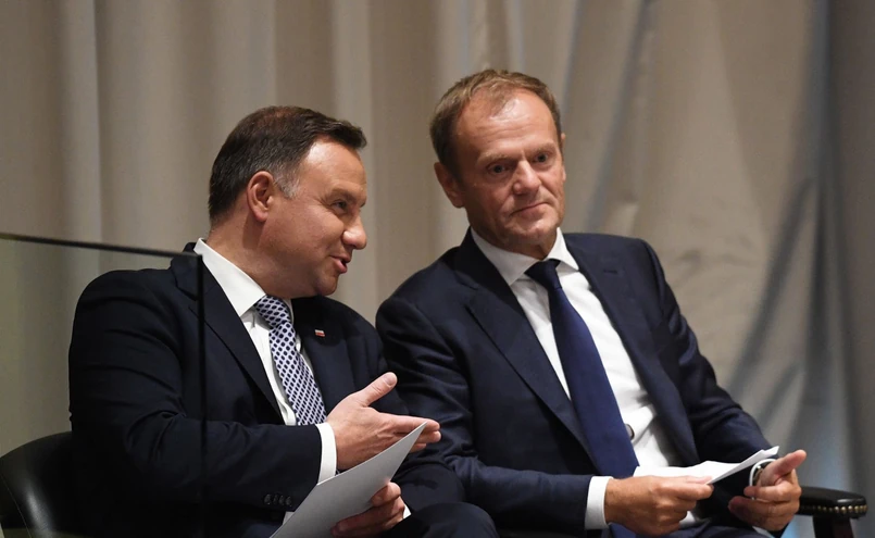 Prezydent Andrzej Duda i przewodniczący Rady Europejskiej Donald Tusk uczestniczyli we wtorek w nowojorskiej siedzibie ONZ w spotkaniu pod przewodnictwem sekretarza generalnego ONZ Antonio Guterresa poświęconym przyjęciu deklaracji "Action for Peacekeeping". Kamery i fotoreporterzy uchwycili, jak w oczekiwaniu na swoją kolej do wygłoszenia wystąpienia, prezydent Duda i przewodniczący Tusk rozmawiają. Na nagraniu widać, że obu politykom dopisywały humory.