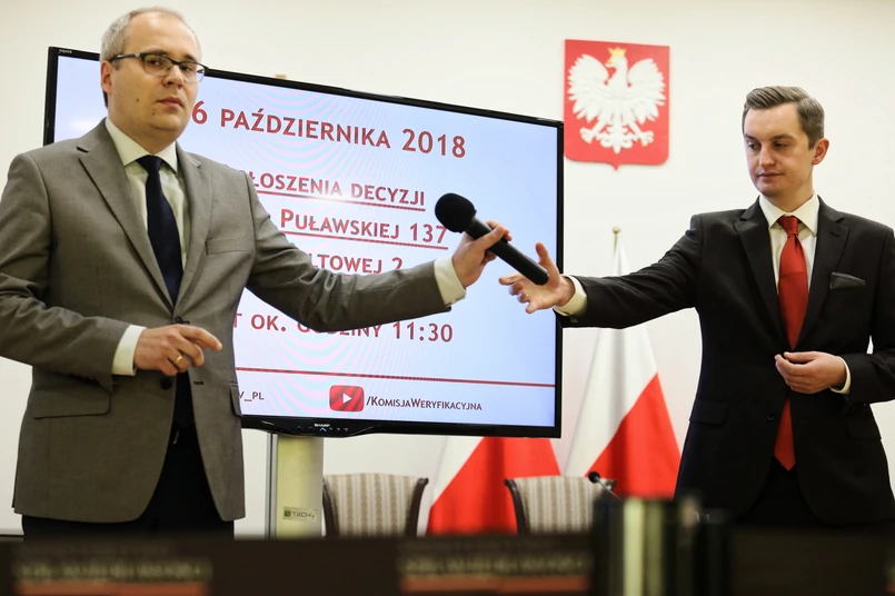 We wtorek komisja weryfikacyjna na posiedzeniu niejawnym zajęła się sprawami dot. zwrotu nieruchomości położonych przy ul. Asfaltowej 2 i ul. Puławskiej 137 na warszawskim Mokotowie. Po posiedzeniu komisja ogłosiła orzeczenie. W sprawie Asfaltowej 2 - jak poinformował wiceprzewodniczący komisji Sebastian Kaleta podczas briefingu - komisja stwierdziła nieważność decyzji prezydenta m.st. Warszawy z 30 grudnia 2010 r. w zakresie 8881 z 201 256 udziałów w prawie użytkowania wieczystego gruntu zabudowanego wraz z prawem własności lokalu nr 3 objętego księgą wieczystą. Decyzję ws. Asfaltowej Kaleta ocenił jako skomplikowaną, bo - jak mówił - "podzieliśmy charakter dobrej wiary i złej wiary beneficjentów i dalszych nabywców". Ws. nieruchomości położonej przy Asfaltowej 2 doszło do nieodwracalnych skutków prawnych, bo beneficjenci decyzji zwrotowej sprzedali lokale.