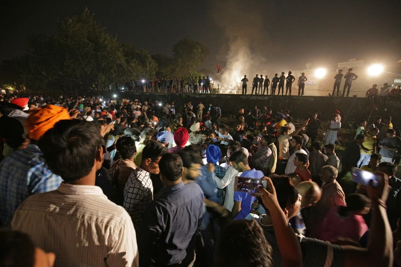 Stojący w pobliżu torów na przedmieściach miasta tłum obserwował palenie kukły demona Rawany z okazji święta Dasara. Nadjeżdżający z dużą prędkością pociąg potrącił zgromadzonych, którzy nie słyszeli dźwięków maszyny, zagłuszonych przez fajerwerki. Część osób stała na torach, by mieć lepszy widok - relacjonuje portal Times Now. Portal dodaje, że ludzie stojący na torach nie mogli uciec, ponieważ w tym samym czasie z drugiej strony nadjechał drugi pociąg.