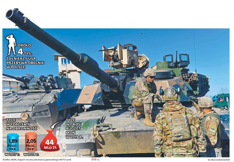 Obecnie w Polsce są ponad 4 tys. żołnierzy amerykańskich. Mimo ożywionych rozmów polsko-amerykańskich nie ma co się spodziewać zbyt szybko kolejnych oddziałów sojuszniczych. Nawet jak już Amerykanie się na coś zdecydują, co może zająć jeszcze sporo czasu, to szczegółowe negocjowanie umowy zajmie co najmniej kilka miesięcy. To oznacza, że środki na ten cel na pewno nie znajdą się w amerykańskim budżecie na 2020 r. (za Atlantykiem rok budżetowy zaczyna się 1 października). Jeśli nie zajdą więc jakieś nadzwyczajne okoliczności, najwcześniej wzmocnienia obecności można się spodziewać na przełomie lat 2021–2022. W listopadzie 2020 r. Amerykanie będą wybierać prezydenta. A to też może mieć wpływ na ewentualną relokację wojsk i jej harmonogram.