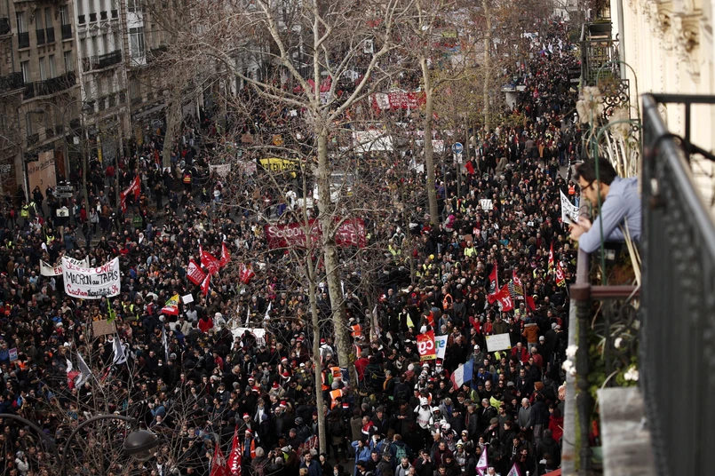 Reforma systemu emerytalnego jest jedną z największych ambicji prezydenta Emmanuela Macrona i jego rządu. Jej głównym celem jest zastąpienie 42 systemów emerytalnych funkcjonujących w kraju jednym, powszechnym. Taka zmiana oznaczałaby zniesienie wyjątków, jakimi cieszą się pracownicy niektórych sektorów, w tym transportu publicznego. Kierowca metra zgodnie z obecnie obowiązującymi zasadami może przejść na emeryturę w wieku 55 lat. Specjalne reżimy powodują duże zróżnicowanie w emeryturach. Wysokość świadczeń w niektórych przypadkach jest obliczana na podstawie wynagrodzenia z ostatnich sześciu miesięcy pracy, w innych brane są pod uwagę tylko najwyższe pensje. Teraz rząd chce, by na wysokość świadczenia miała wpływ każda przepracowana godzina. To dla pracowników transportu publicznego oznaczałoby wydłużenie okresu pracy z jednoczesnym zmniejszeniem świadczeń. Dlatego zatrudnieni w tym sektorze stawiają największy opór. Po wtorkowych protestach na ulicach francuskich miast widać, że ich determinacja nie słabnie. W całym kraju protestowało 615 tys. osób. Związki zawodowe zmobilizowały Francuzów do wyjścia na ulice po raz trzeci. Poprzedni protest 10 grudnia zgromadził 339 tys. osób. Pierwszy pięć dni wcześniej – 806 tys.