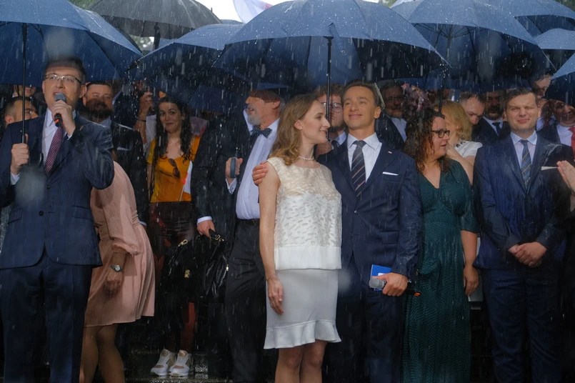 Jak podkreślił, "widzi nadzieję na lepszą politykę, politykę od nowa". Przypomniał, że jest kandydatem wyłonionym w jedynych w Polsce "prawdziwych prawyborach, w których każdy mógł przyjść i zagłosować", prawyborach zorganizowanych przez "prawdziwie zjednoczone siły ideowe". Dodał, że również wybór na wiec "placu, gdzie nie ma barierek" był po to, aby każdy mógł "podejść pod samą scenę", zadać pytanie, czy powiedzieć, że się z czymś nie zgadza.