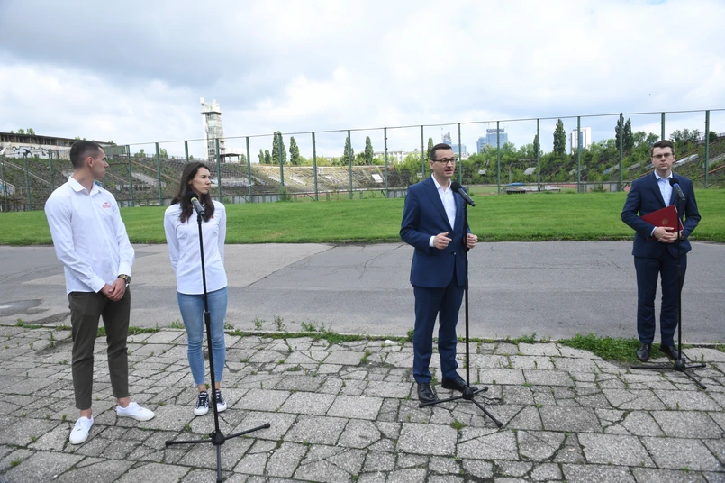 "Wyciągamy rękę do Rafała Trzaskowskiego i prosimy o przekazanie tego stadionu, bo za rok ten stadion, +Skra Warszawa+, będzie przeżywał piękny jubileusz 100-lecia i na to 100-lecie chcemy wykonać remont za pana Rafała Trzaskowskiego i my ten remont wykonamy jeśli tylko Miasto Stołeczne Warszawa przekaże ten piękny stadion z tradycjami, który był dumą polskich sportowców" - powiedział szef rządu.