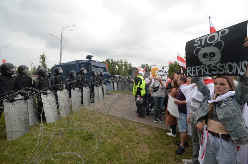 Uczestnicy protestu podeszli blisko do kordonu utworzonego przez funkcjonariuszy OMON i żołnierzy wojsk wewnętrznych, a także przez milicyjną polewaczkę i maszyny z rozkładanymi tarczami do rozpędzania demonstracji. Na płocie, który w ten sposób powstał, demonstranci przykleili plakaty i malują grafitti.