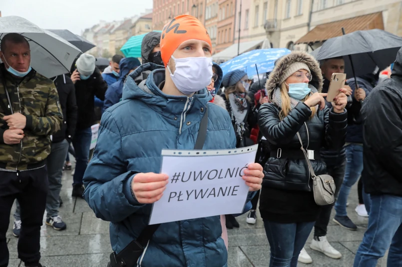 Zaznaczali też, że strata, którą branża poniosła do tej pory, to 3 mld zł. "Byliśmy zamknięci jako pierwsi i otwarci jako ostatni. Jesteśmy jedyną prywatną branżą, łącznie z aguaparkami, która jest teraz zamykana, ale jest jedna różnica. W marcu nasi klienci byli w wielu przypadkach przeciwko nam, a raczej chcieli, żeby nas zamknąć, bo przecież się bali, nie wiedzieli, o co chodzi. Dzisiaj ci klienci są z nami (...) Nie jesteśmy marginalną branżą" - podkreślali organizatorzy protestu.