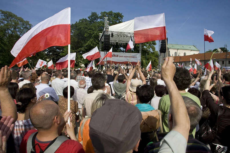 "Atmosfera, którą stworzył Jarosław Kaczyński, gdzie nie można przejść, żeby ktoś nie ubliżał, jest atmosferą strachu. W państwie Jarosława Kaczyńskiego, w państwie gdzie nie można się zgromadzić, bo znajdzie się jakiś paragraf, albo znajdą się ludzie, którzy będą rzucać jakimiś przedmiotami, ja żyć nie chcę" - mówił Palikot i wzywał do głosowania na Bronisława Komorowskiego.