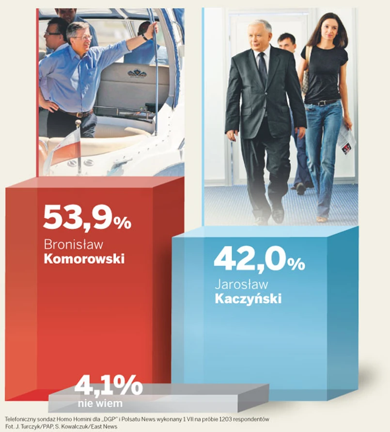 Wygrany przez prezesa PiS środowy pojedynek z marszałkiem Sejmu w TV zatrzymał niekorzystną tendencję, która uwidoczniła się w wewnętrznych badaniach sztabów po pierwszym, niewątpliwie przegranym starciu telewizyjnym. Według analizy wykonanej przez instytut Homo Homini przewaga Komorowskiego w niedzielę zmaleje. Bo wielu potencjalnych wyborców Platformy wyjedzie poza swoje miejsce zamieszkania. Meteorolodzy zapowiadają słoneczny weekend. A nie wszyscy pamiętali o zaświadczeniach do głosowania. Dziś ostatnia szansa.