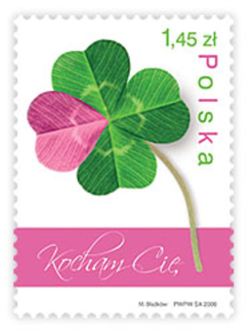 Na znaczku tym został przedstawiony synonim szczęścia i pomyślności - czterolistna koniczyna. Wraz z emisją znaczka została wydana specjalna koperta opatrzona datownikiem - czterolistną koniczyną utworzoną z listków w kształcie serca stosowanym w polskim mieście zakochanych - Chełmie. Dodatkowo na kopercie umieszczony został napis - myśl George Sand "Jest tylko jedno szczęście w życie - kochać i być kochanym".