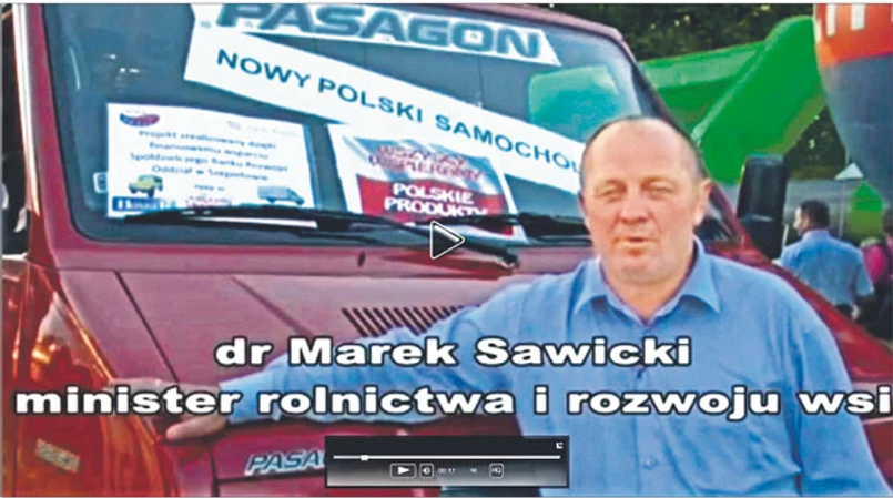 Dobra polska myśl techniczna, zachęcam, żeby skorzystać. Powtarzam: dobre polskie produkty są lepsze niż byle jakie zagraniczne – tak minister Marek Sawicki reklamuje samochód Pasagon produkowany przez prywatną firmę DZT Tymińscy z Siemiatycz.