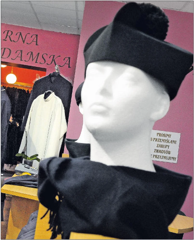 Aneta Zdyb, współwłaścicielka Salonu Odzieży Czarnej Carmen, tłumaczy, że początkowo asortyment był przeznaczony dla osób w żałobie. – Sam rynek zweryfikował charakter sklepu. Zorientowaliśmy się, że jest zapotrzebowanie na odzież dla pań. A ponieważ obok nas mieszczą się instytucje kościelne, księża pytali też o sutanny – podkreśla Aneta Zdyb, zaznaczając, że w sklepie stacjonarnym rzeczy dla duchownych i świeckich wystawione są w różnych miejscach.
