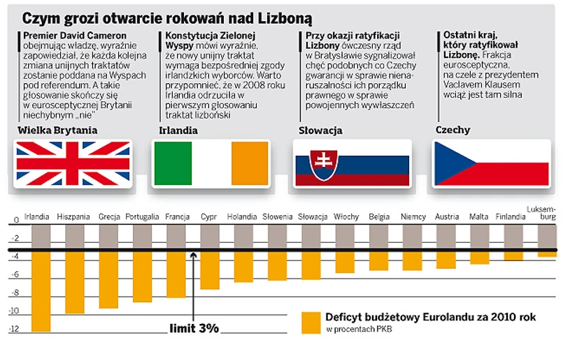 Renegocjowanie traktatu powoduje jeszcze jeden problem. Na rozpoczynającym się jutro szczycie UE w Brukseli nie będzie prawdopodobnie kompromisu w sprawie zaostrzenia sankcji dla krajów UE, które łamią unijne zakazy nadmiernego deficytu.