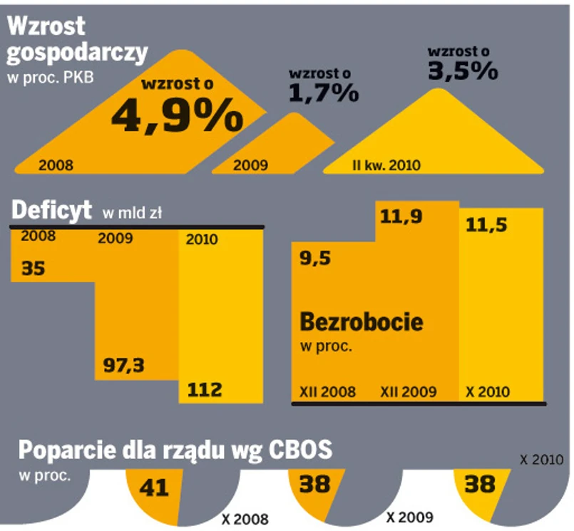 Rząd Tuska okazał się za to sprawny w rozwiązywaniu doraźnych problemów w rządzeniu. Największym testem był światowy kryzys finansowy, który z jednej strony ujawnił siłę naszej gospodarki, ale z drugiej obnażył słabość stanu finansów publicznych. Jednak rząd wyszedł z tego obronną ręką i mógł chwalić się wzrostem PKB, gdy inni notowali recesję.