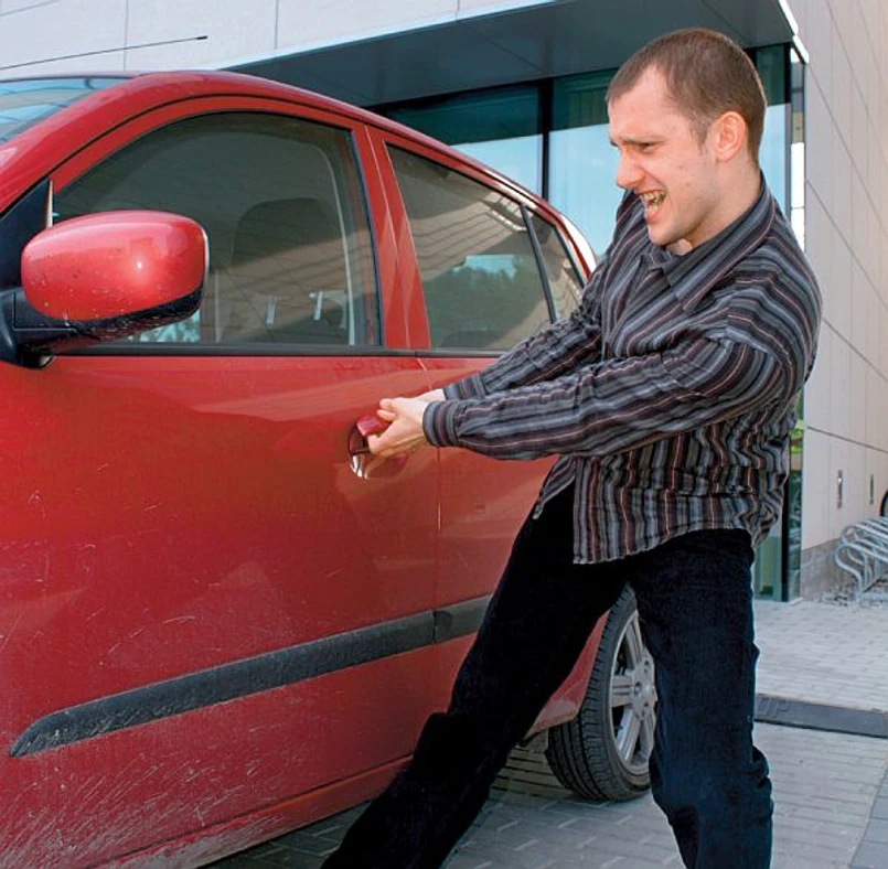 Jeżeli jesteśmy blisko domu, zamiast próbować forsować drzwi, należy wrócić po zapasowy kluczyk. Nawet gdy musielibyśmy wydać na taksówkę kilkadziesiąt złotych, i tak jest to najprostsze i najtańsze rozwiązanie. A co zrobić, jeśli nie mamy dostępu do zapasowego kluczyka? Pół biedy, jeżeli taka sytuacja zdarzy się w dużym mieście. W takim przypadku można zwykle skorzystać z pomocy pogotowia zamkowego, którego numer uzyskamy za pośrednictwem informacji telefonicznej. Trzeba tylko pamiętać, że jeżeli kluczyk znajduje się w aucie, do momentu przyjazdu fachowców należy pozostać na miejscu, bo okazja czyni złodzieja. Gorzej, gdy musimy zdać się na własne siły. Możliwości jest wtedy kilka. Stosunkowo prosta metoda, ale mająca sens jedynie w przypadku, kiedy kluczyk na pewno znajduje się w środku, a auto stoi na odludziu i naprawdę nie ma innego wyjścia, to siłowe pokonanie przeszkody.