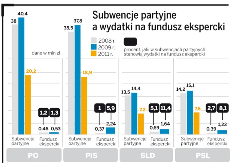 Poprawka zgłoszona i przeforsowana tuż przed końcem 2010 roku spowodowała, że w roku wyborczym subwencja na partie polityczne spada o połowę. W tej sytuacji przesunięcie jednej czwartej środków na fundacje mogłoby ograniczyć możliwość funkcjonowania SLD i PSL. Zwłaszcza że ludowcy mają 18 mln zł długu. A lewica liczyła na kilkadziesiąt milionów ze sprzedaży siedziby przy Rozbrat w Warszawie, ale chętny się wycofał.