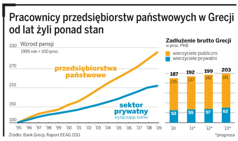 Gdy za dwa lata Grecja nie będzie już miała kroplówki z Brukseli, inwestorzy prywatni zaczną się domagać tak wysokiej premii za ryzyko kupna greckich obligacji, że kraj straci płynność. Dług publiczny przekroczy 150 proc. PKB. – Mamy do czynienia z państwem, które już zbankrutowało, a jego gospodarka jest całkowicie niekonkurencyjna – mówi „DGP” Jan-Egberd Sturm, profesor ekonomii Uniwersytetu z Zurychu i jeden z autorów raportu EED.