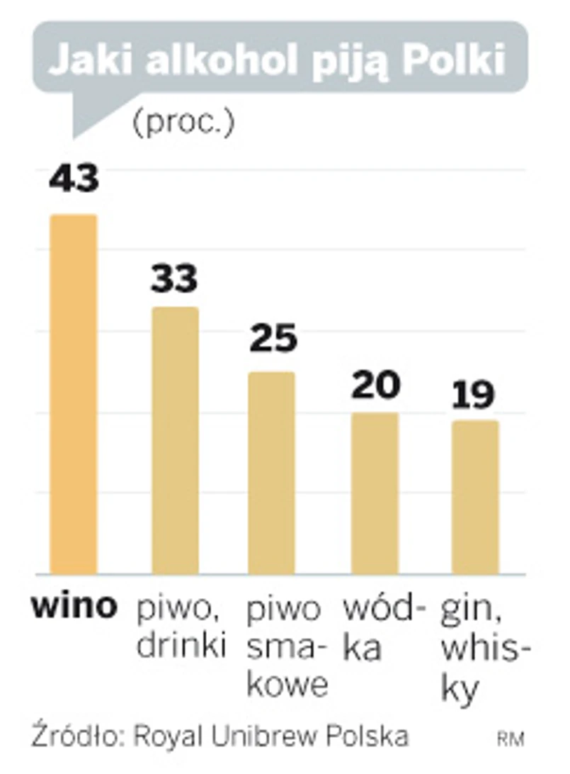 Mocne alkohole w Polsce wybierają mężczyźni. Kobiety wolą wino – preferuje je aż 43 proc. wszystkich pijących pań – wynika z badań firmy IQS-Quant Group przeprowadzonych na zlecenie Royal Unibrew Polska.