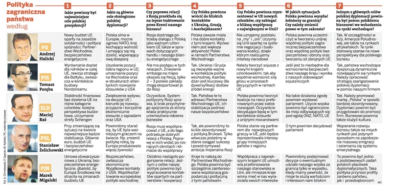 Wszystkie są zgodne, że jednym z priorytetów naszej prezydencji w UE powinno być bezpieczeństwo energetyczne. Tyle że PiS, PJN i SLD są zdania, że szansą na to jest ściślejsze związanie z Unią Ukrainy, Gruzji i Azerbejdżanu, krajów, przez które do Europy może popłynąć kaspijska ropa. Tymczasem Andrzej Halicki z PO wskazuje na Rosję, z którą – jego zdaniem – możemy prowadzić dialog o naszym bilansie energetycznym.