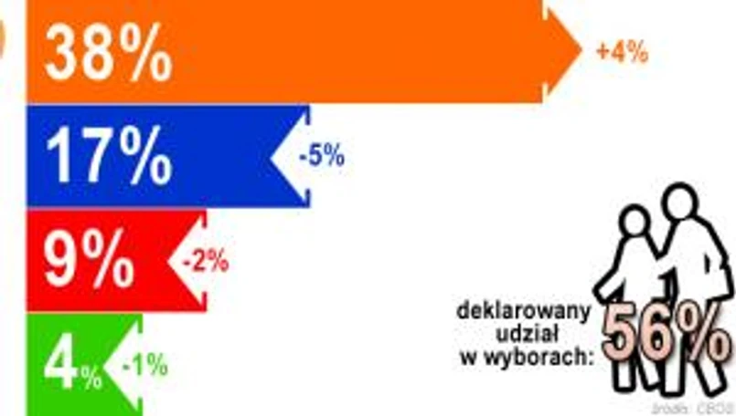 W porównaniu z czerwcowym badaniem poparcie dla PO wzrosło o 4 punkty proc. (w stosunku do 34 proc. z czerwca).