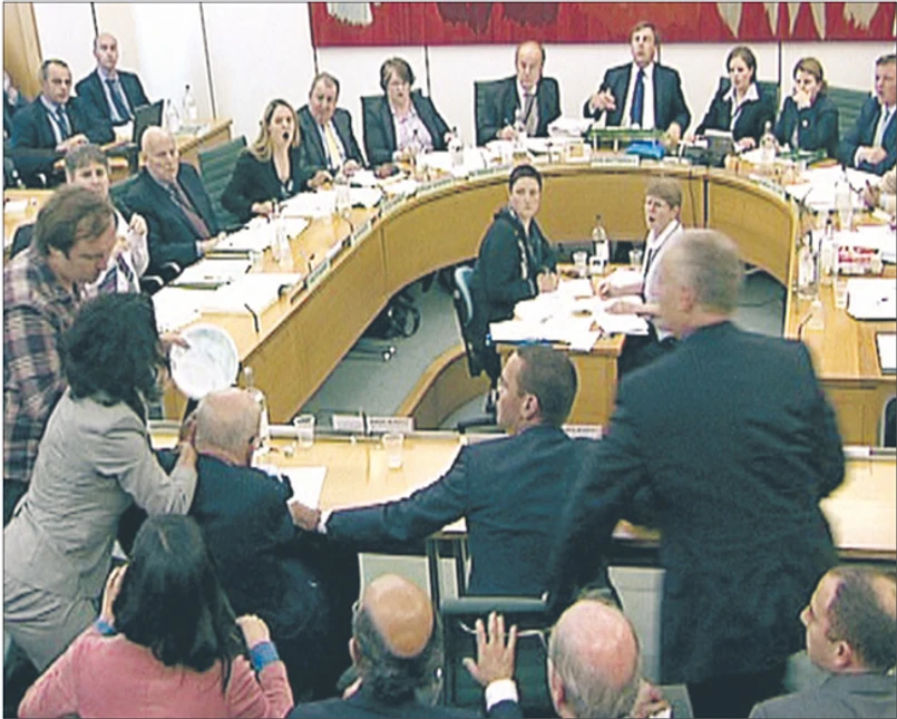 Pochodzący z Australii magnat medialny po raz pierwszy w 40-letniej karierze na brytyjskim rynku stanął oko w oko z parlamentarzystami. Mimo to budzące ogromne zainteresowanie przesłuchanie Murdocha przed komisją Izby Gmin ds. kultury, mediów i sportu rozczarowało. Według pierwszych komentarzy Murdoch nie powiedział niczego, czego nie można się było spodziewać, a członkowie komisji – na co dzień mało znani posłowie – nie bardzo go potrafili przycisnąć. Najbardziej emocjonującym momentem był atak na Murdocha dokonany przez jednego z widzów z galerii dla publiczności przy użyciu pianki do golenia.