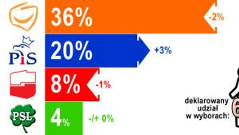 Zmalała również grupa ankietowanych, chcących oddać głos na SLD - o 1 punkt procentowy. PSL dokładnie tak samo jak w lipcu znalazło się poniżej progu wyborczego z wynikiem 4 proc.