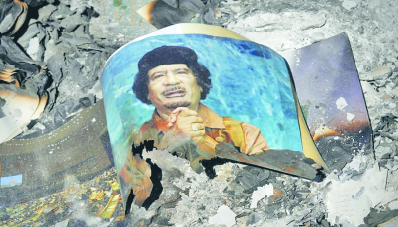 Nie zdołał jednak zwalczyć bezrobocia ani ubóstwa. W połowie stycznia doszło do pierwszych protestów w Cyrenajce, jednym z trzech historycznych regionów Libii. W odpowiedzi Kaddafi przeznaczył 20 mld dol. na budownictwo mieszkaniowe. Nie pomogło: po miesiącu w Bengazi wybuchła rewolucja. Pretekstem było brutalne stłumienie przez policję protestów przeciwko zatrzymaniu lokalnego obrońcy praw człowieka Fathiego Turbila. W marcu do akcji wkroczyło także natowskie lotnictwo, co ostatecznie przesunęło szalę zwycięstwa na stronę rebelii.
