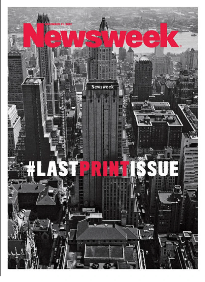 Ostatni papierowy "Newsweek", osiągalny tylko dla amerykańskich odbiorców, trafił do kiosków wczoraj. Cyfrowa publikacja nosi nazwę "Newsweek Global" i ma jedną, ogólnoświatową edycję. Tygodnik, który ukazuje się prawie od 80 lat, będzie dostępny w internecie na na e-czytnikach i tabletach.