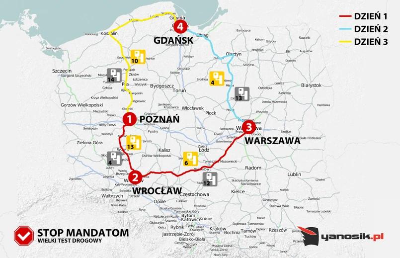 Łącznie w ciągu całej akcji przejechano 1377 km. Całkowity czas przejazdu jadąc w 100% zgodnie z przepisami to 15h 15min, co stanowi czas dłuższy o ponad 3 godziny od tego w jakim powyższe trasy pokonują statystycznie kierowcy.