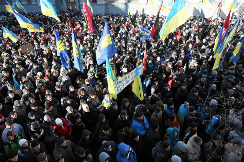 Budynek Rady Najwyższej otoczony jest od rana przez kilka tysięcy protestujących opozycjonistów. Swoją manifestację zorganizowała także rządząca Partia Regionów. Odbywa się ona tuż przed budynkiem parlamentu, za kordonem milicji i biorą w niej udział głównie - tak zwane - „tituszki”, czyli dresiarze współpracujący z władzami.