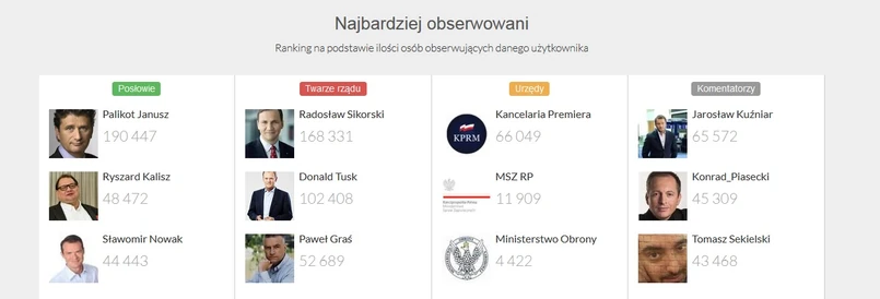 Szef dyplomacji jest zarówno obserwowanym przez największą liczbę osób członkiem rządu, jednym z najczęściej twittujących jak i najczęściej retwittowanych. Z kolei w kategorii urzędów kierowane przez niego MSZ także znajduje się w czołówkach wszystkich kategorii.