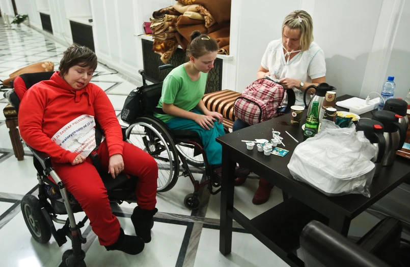 Protest okupacyjny osób opiekujących się niepełnosprawnymi dziećmi prowadzony jest w Sejmie od środy zeszłego tygodnia. Protestujący domagają się uchwalenia stosownych przepisów, które gwarantowałyby im finansową pomoc państwa w wysokości 1300 złotych netto miesięcznie na opiekę nad dzieckiem.