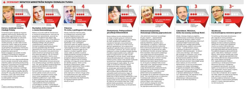 Trudno mówić o nowej jakości czy wielkiej energii wniesionej przez ministrów nauki i szkolnictwa wyższego, administracji i cyfryzacji czy sportu. Półrocze ich rządów było okresem wdrażania do kierowania resortem. Nowi szefowie nie wyszli jeszcze z kolein wytyczonych przez poprzedników. To nie tylko nasza ocena. Także politycy PO jako najsłabsze postacie w rządzie wskazują właśnie na tę trójkę. Na zmianę wizerunku ministrowie mają ponad półtora roku, do wyborów.