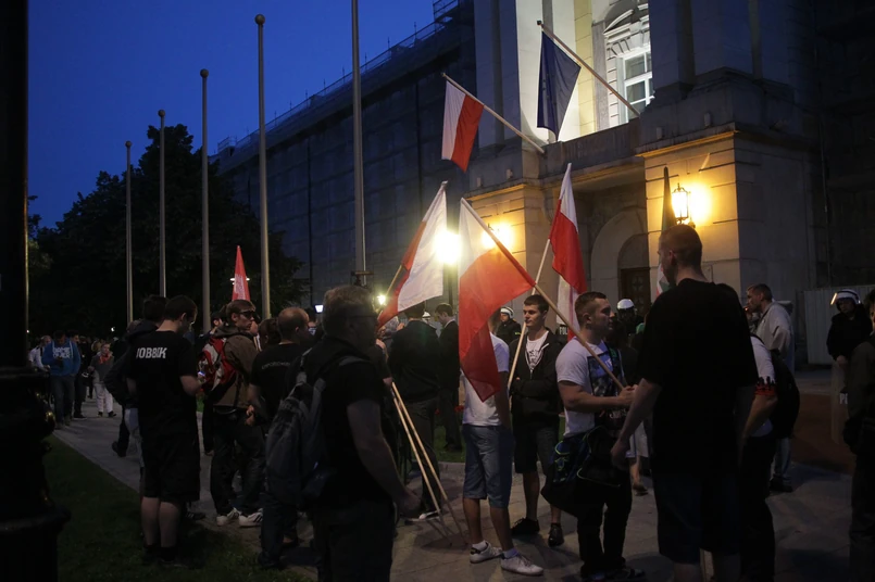 Protestujący zebrali się przed Ministerstwem Spraw Wewnętrznych. To właśnie dymisji szefa tego resortu - Bartłomieja Sienkiewicza - domagali się najbardziej. Zdaniem narodowców, pozostawienie go na stanowisku jest niedopuszczalne. Podkreślali, iż działał on wbrew interesowi Polski, podważając istnienie struktur państwowych.