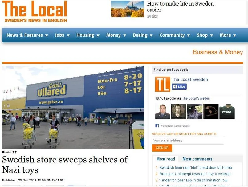 Zbulwersowani klienci zgłosili, że na mundurach zabawek-żołnierzyków widnieją swastyki. Prezes Gekas Boris Lennerhov zapowiedział, że firma wycofa zabawki. "To nie jest idealna zabawka jaką chcielibyśmy promować" - powiedział.