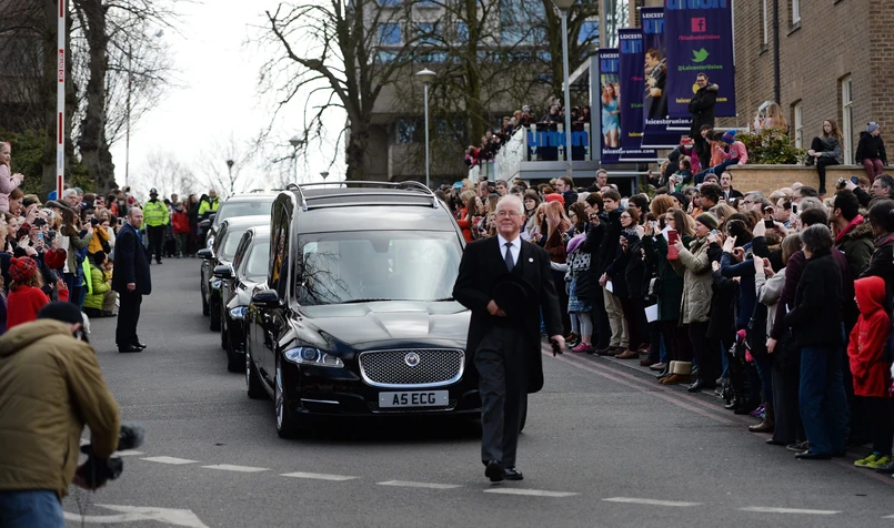 Uroczystość rozpoczęło troje odległych potomków Ryszarda III, którzy położyli na trumnie białe róże - symbol linii Yorków dynastii Plantagenetów, pokonanej w 1485 roku przez rebeliantów Henryka Tudora. Król Ryszard III padł na polu bitwy pod Bosworth, gdzie - jeśli wierzyć Szekspirowi - uchodząc przed pogonią gotów był ofiarować "królestwo za konia". Trasa konduktu wiedzie zresztą nieopodal miejsca, gdzie przypuszczalnie poległ król.