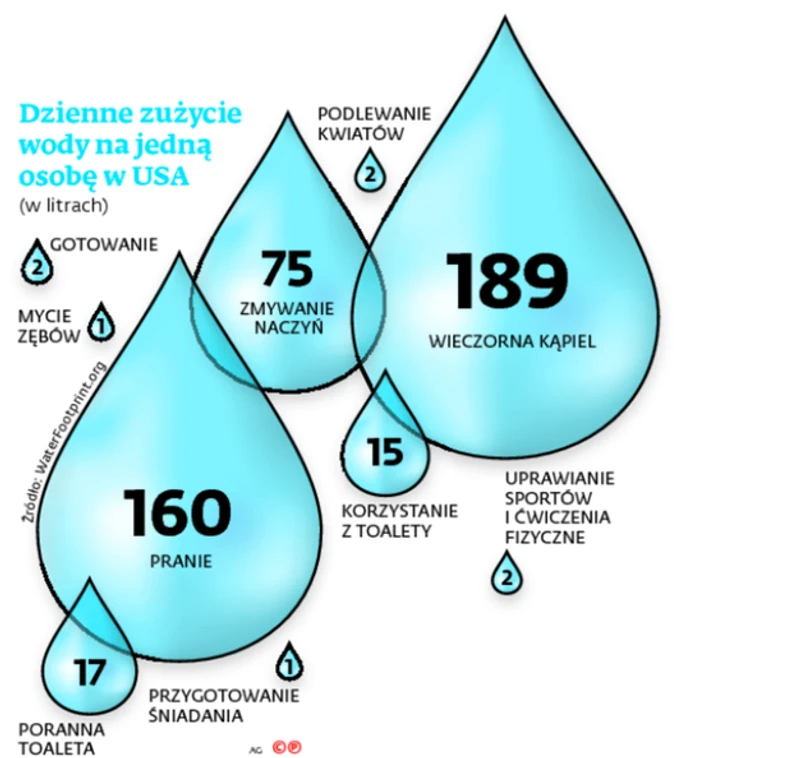 – Zmieściłaś się? Ale jak? Bo wyczytałam wczoraj, że przeciętny Amerykanin zużywa sporo ponad 400 l wody dziennie.