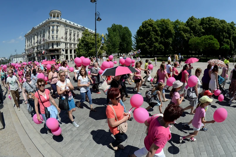 Na mecie marszu na Polu Mokotowskim organizatorzy zapraszają na piknik rodzinny. Można tu bezpłatnie wykonać badanie USG i nauczyć się samobadania piersi oraz porozmawiać ze specjalistami.